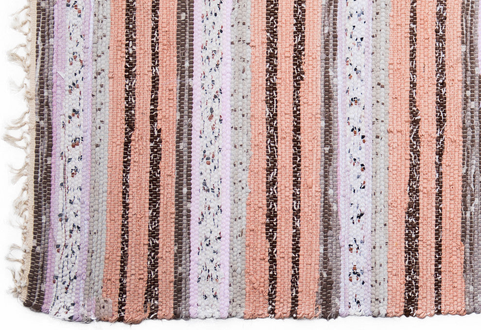 Newly woven - This newly woven rug uses a sophisticated color palette. This lovely rug features wonderful subtle colors such as soft grays which soften the brights and whites. The base of the fringe detail is exquisite.