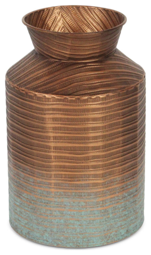 Perfect for a themed floral arrangements, decorative vases help create a well-rounded aesthetic. This piece features a tapered body with a rustic copper finish and unique corrugated texture. Let this vase be the display medium to form that perfect look.
