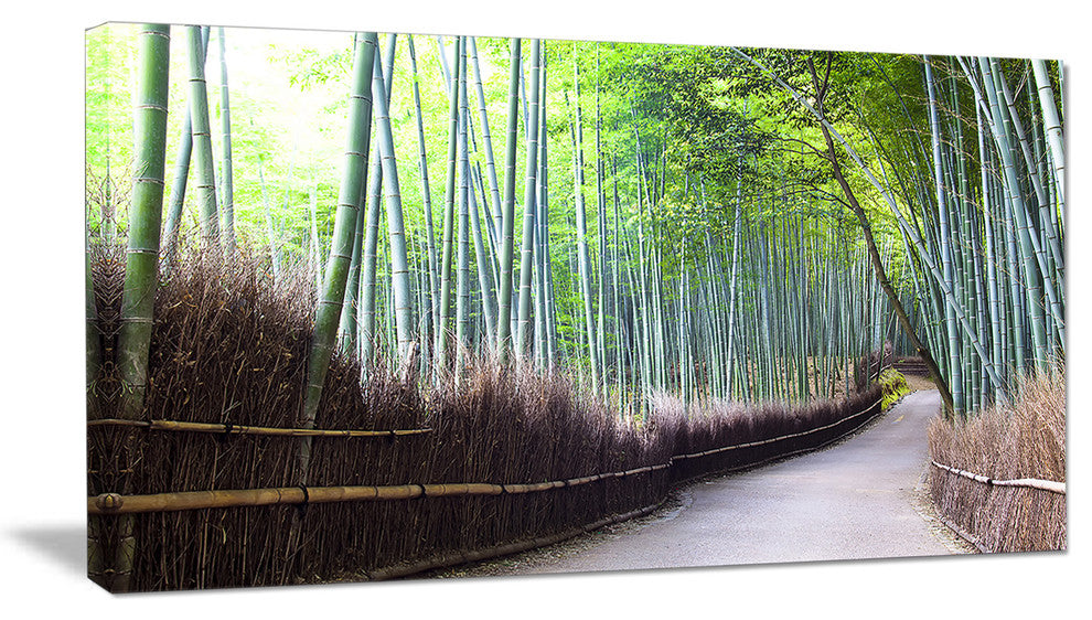 The Kyoto Bamboo Forest Pathway canvas art print is sure to make an impression on anyone who sees it. This artwork is gallery wrapped around a 1-inch solid wood frame and arrives carefully packaged and entirely ready to hang on the wall. Design Art only uses the highest resolution and pigments to ensure a crisp colorful print that is never faded or pixelated. This artwork is sure to be a conversation starter in any home or office.