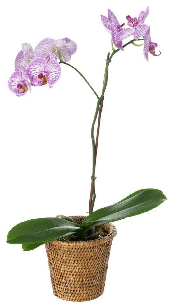 La Jolla Handwoven Rattan Planter, Small, 6"x6.5", Honey Brown