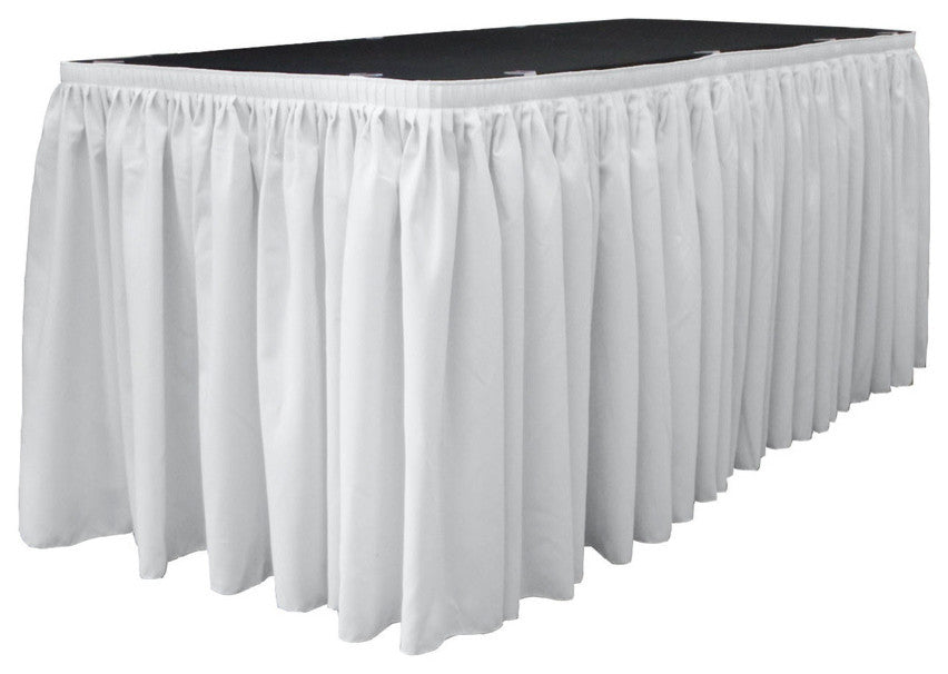 LA Linen Polyester Poplin Table Skirt, White, 168"x29"