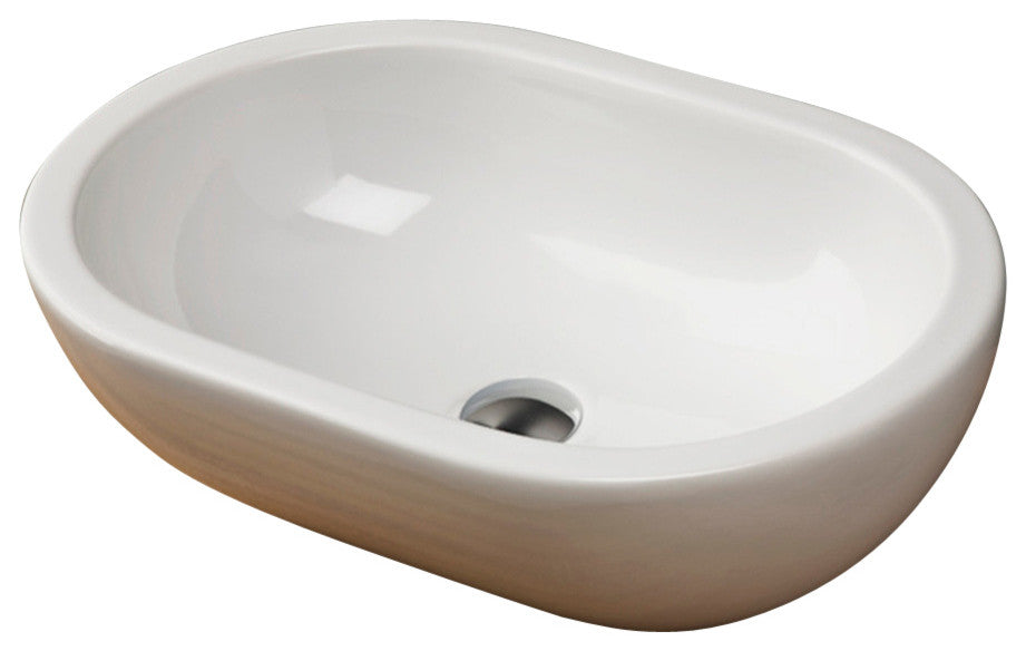 Vessel porcelain lavatory without an overflow, finished back.23 5/8" W, 15 3/4" D, 7 1/8" H