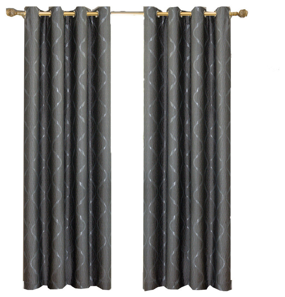 Add an ornate touch to any room in the house with the Laguna Jacquard Window Panels. These fashionable window panels feature a meek contemporary design in a variety of colors, guaranteeing a great match with a variety of decor styles. These grommet jacquard curtain panels add animated texture to your living space. These grommet panels gorgeously frame windows while presenting graphic depth to a room. The jacquard grommet curtain panels are made from a 100 percent polyester fabric, and the easy care material is machine-washable. These grommet curtains are obtainable in a variety of sizes, so you can select the best fit for your window. They are also available in 5 colors, so you can find the perfect match for the decor of a room.- 100% polyester- Sold in pairs- Old-fashioned, classic, contemporary- Geometric, graphic print design- Provides for an elegant touch to any room- Panels hang on grommets- Machine-washableAvailable Sizes Include:- 104 x 63" Pair. (52 x 63" each) - 104 x 84" Pair. (52 x 84" each- 104 x 96" Pair. (52 x 96" each) - 104 x 108" Pair. (52 x 108" each)