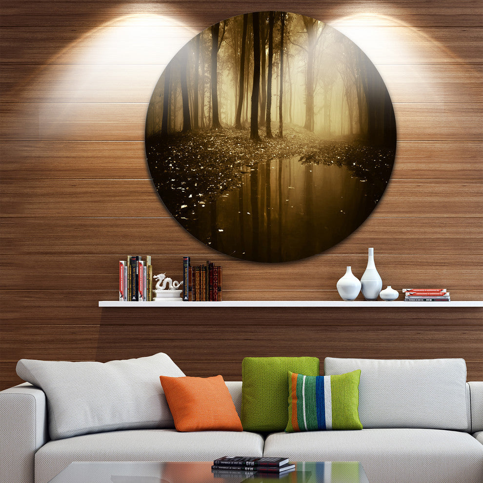 Bring Contemporary Abstraction to your home with this large Circle Metal wall art. This Lake in Forest with Fall Fog Metal Artwork makes it the focal point of any room or office.