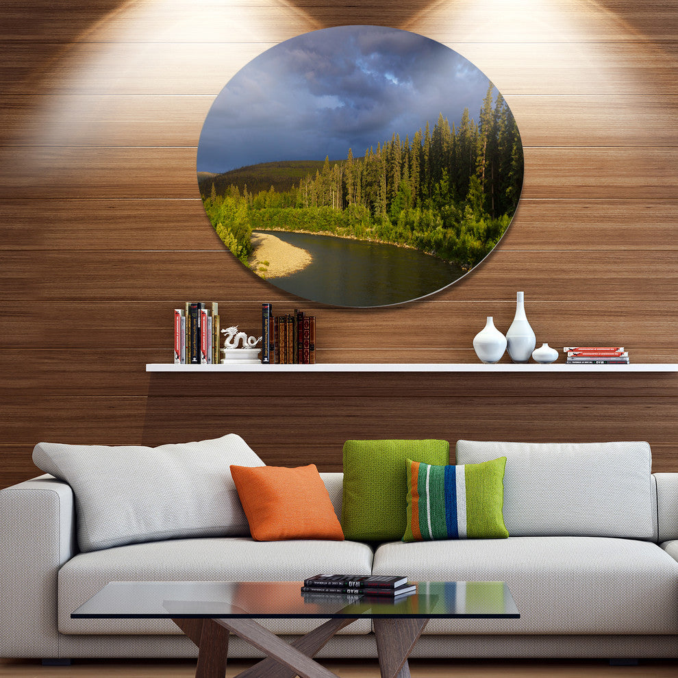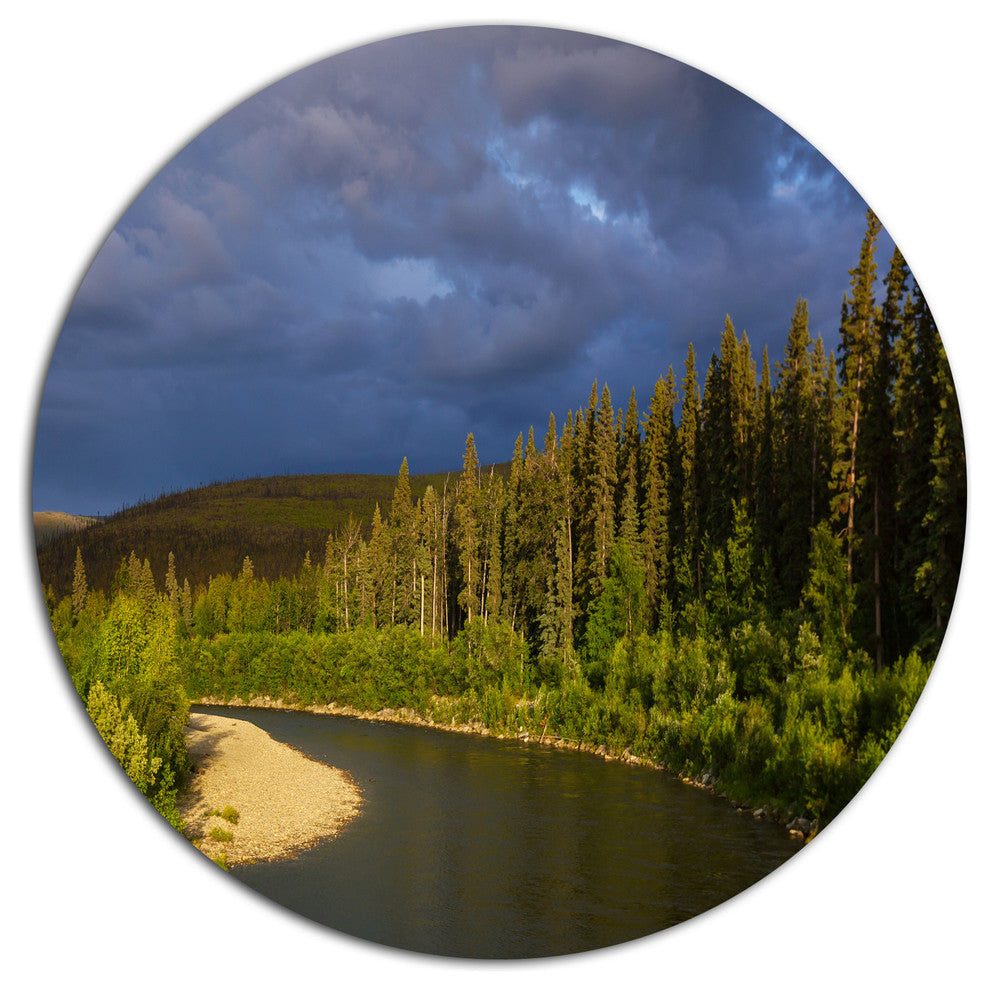 Bring Contemporary Abstraction to your home with this large Circle Metal wall art. This Lake on Alaska under Clouds Metal Artwork makes it the focal point of any room or office.