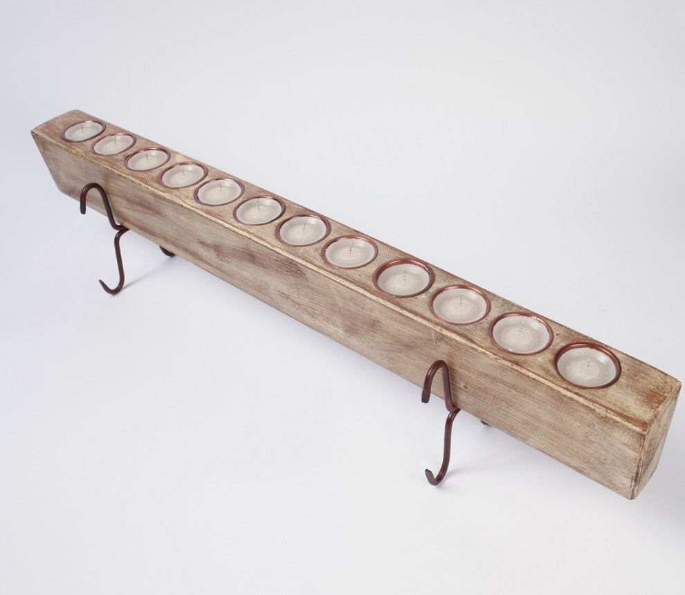 This 12 hole sugar mold set_comes complete and includes the wooden mold, 12 vanilla scented candles, 12 cone shaped tin inserts and a rustic iron stand. This quintessential rustic candelabra is finished in a rustic patina avaliable in a variety of colors.