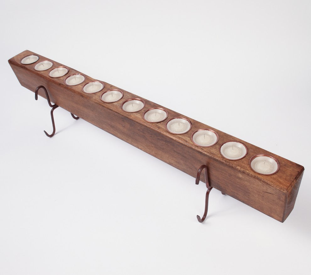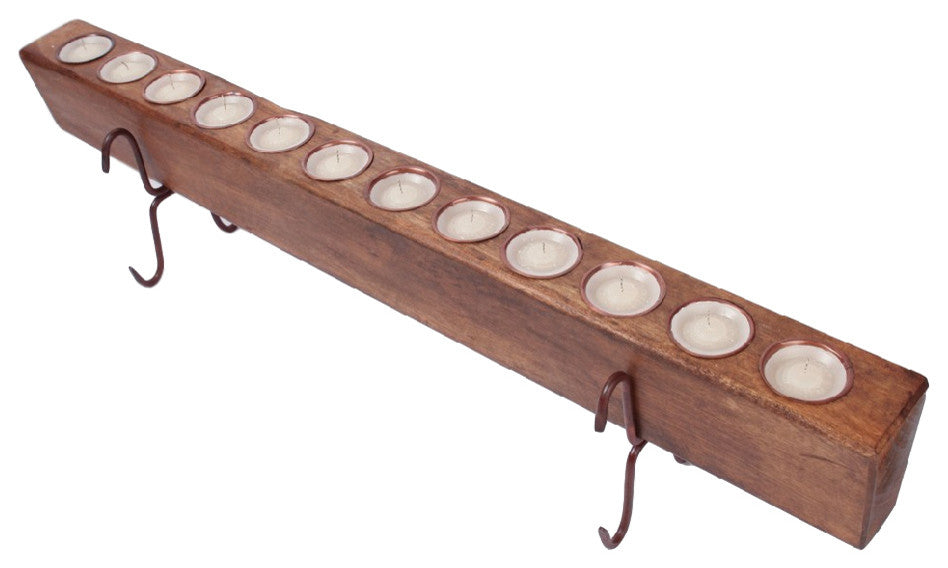 This 12 hole sugar mold set_comes complete and includes the wooden mold, 12 vanilla scented candles, 12 cone shaped tin inserts and a rustic iron stand. This quintessential rustic candelabra is finished in a rustic patina avaliable in a variety of colors.