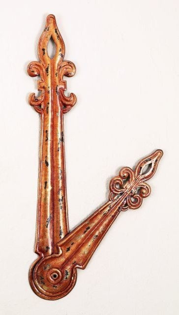 Large and imposing, our clock hands wall decor has an eye- catching design. Handcrafted of lacquered metal. Hooks on back for easy hanging. Actual size will depend on how hands are positioned. Hands can be adjusted to time desired. For decorative use only - not a functioning clock. Size: 32'''' H x 5. 5'''' W x 1'''' Deep Weight: 2 lbs. Heirloom Quality - Expertly hand crafted and hand finished Due to the hand crafted nature of this piece, each piece may have subtle differences.