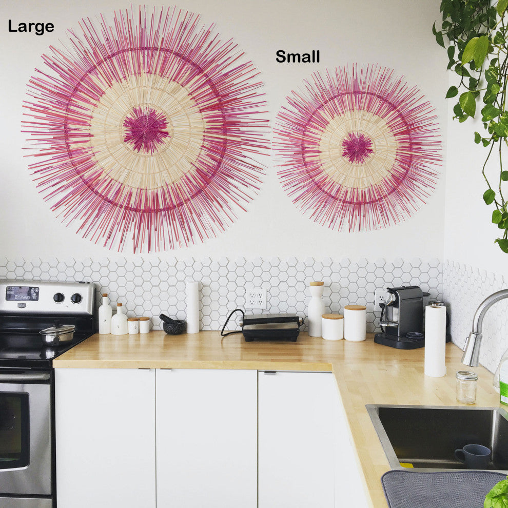 Large Palm Sun Circle, Artisan Crafted, Malawi, Pink, 47"