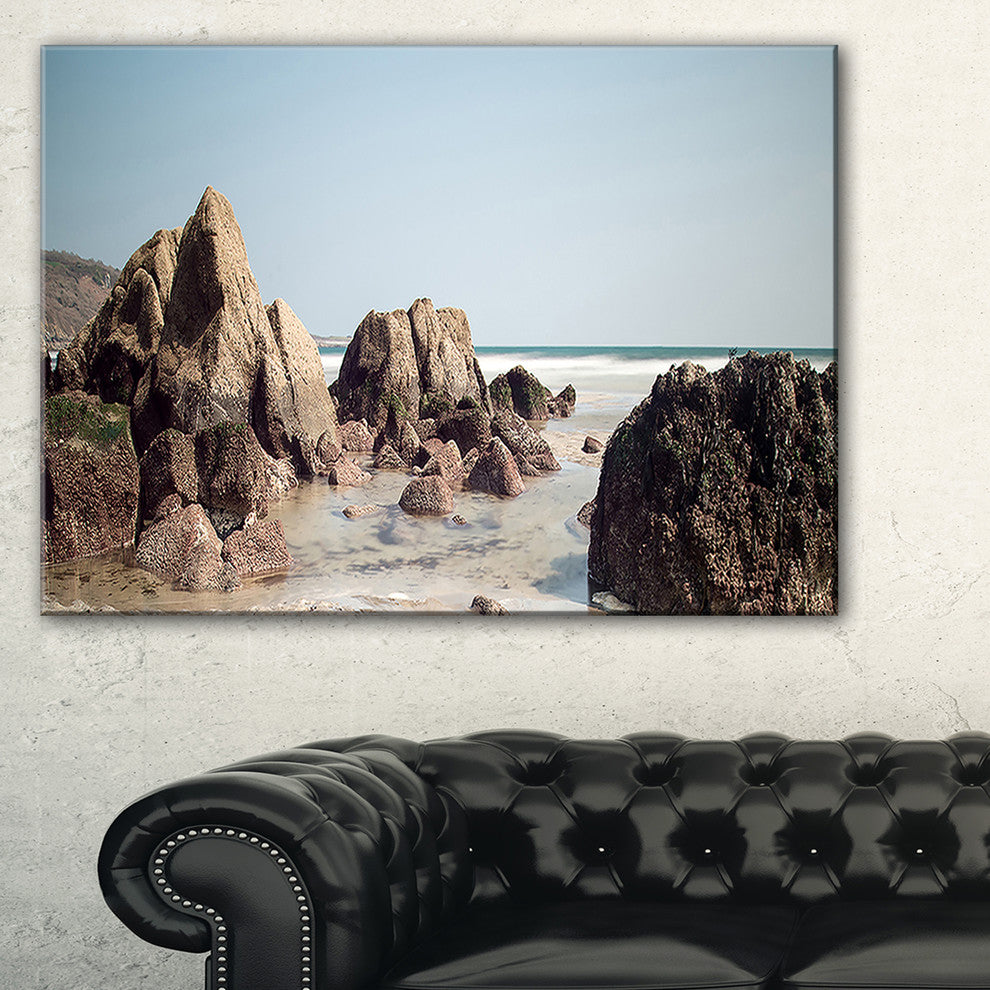 The Large Rocks at Coast Panorama canvas art print is sure to make an impression on anyone who sees it. This artwork is gallery wrapped around a 1-inch solid wood frame and arrives carefully packaged and entirely ready to hang on the wall. Design Art only uses the highest resolution and pigments to ensure a crisp colorful print that is never faded or pixelated. This artwork is sure to be a conversation starter in any home or office.
