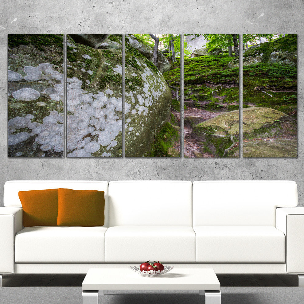 "Large Rocks in Deep Moss Forest" Landscape Art Print Canvas, 5 Panels, 60"x28"