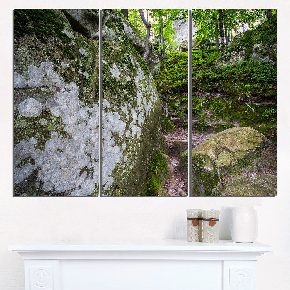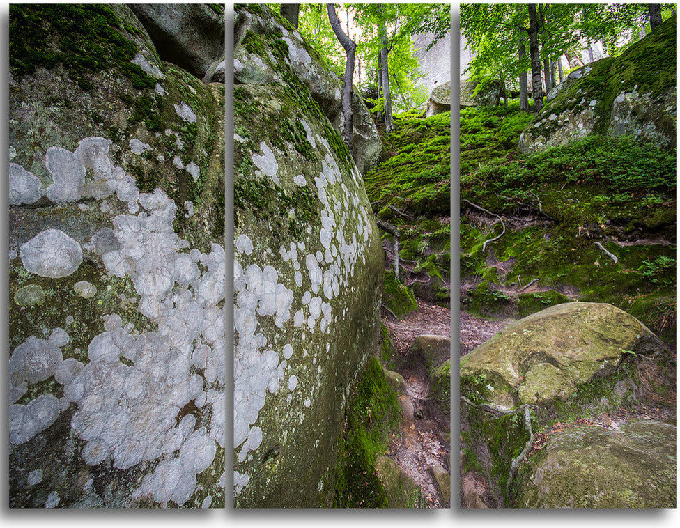 "Large Rocks in Deep Moss Forest" Metal Wall Art, 3 Panels, 36"x28"