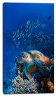 Large Sea Turtle underwater, Abstract Canvas Art Print, 16"x32"
