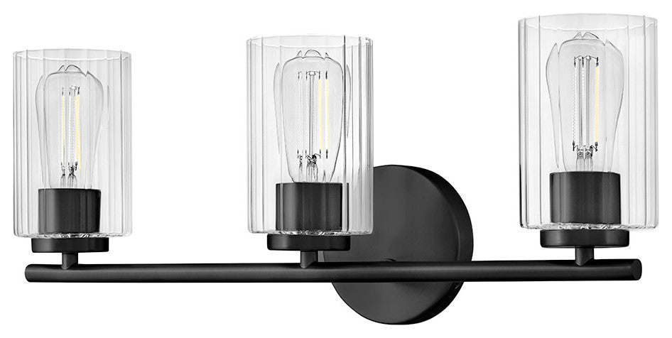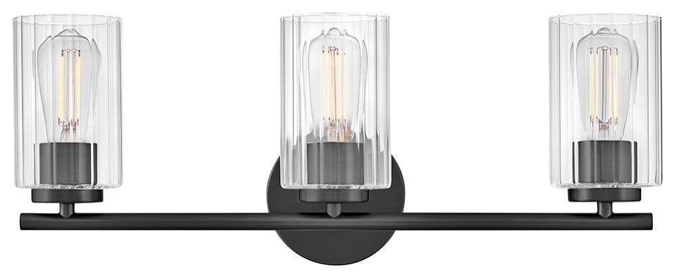 Beaming with low-key luxury, Leta''s clear ribbed glass glimmers with major style. Warm dimmable lamping accented by versatile Black, Brushed Nickel, or Lacquered Brass finishes fills any powder room with a refreshing glow.