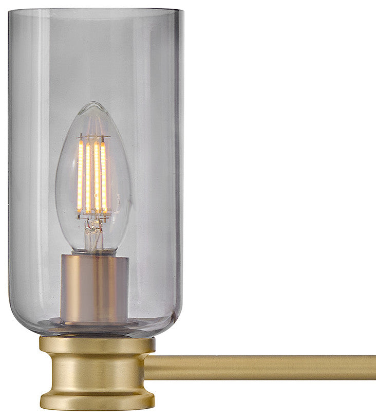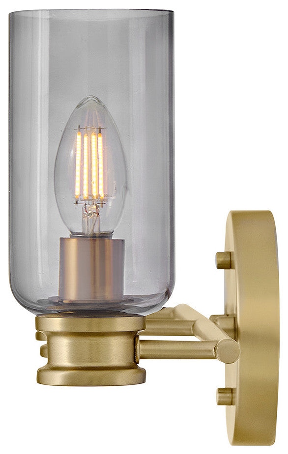 A refined bathroom icon, Naomi''s luxe profile features cylindrical cased opal or smoked glass complemented by a warm Lacquered Brass finish. A bold center cuff accented by soft details brings subtle style to your powder room.