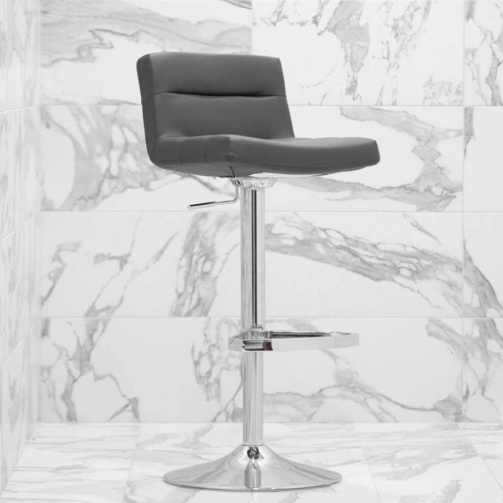 The Lattice Bar Stool is a contemporary masterpiece. It features a wide and accommodating seat with a medium-height backrest for advanced support and relaxation. The seat frame is well padded with high-density foam and upholstered in premium soft leatherette with channel tufting. The superbly comfortable seat is supported by a chrome stem and trumpet base that swivels 360 degrees freely and includes a triangular footrest that follows you all the way around. A gas lift adjusts the height and makes this stool the perfect fit for any countertop or bar height table. The Lattice is also available with a square flat base and is a great option with its slightly lower profile backrest that won''t obstruct your view when not in use. Although, it is so comfortable you and your guests may not want to leave them anyways! (If you prefer a slightly higher backrest and deeper seat, check out our best-selling Lush Bar Stool that comes in a variety of colors and base options). This product is suitable for indoor use only.