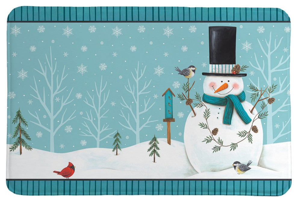 The Friendly Snowmen Memory Foam Rug is a happy holiday design. The snowmen in top hats sit in the snow on a beautiful winter snow day with birds and pinecones around them. Friendly Snowmen Memory Foam Rug will add the holiday spirit to any bathroom. All of our products are digitally printed to create crisp, vibrant colors and images. Made to order in the USA on imported fabric.Measures 21" x 34"High quality for ultra soft comfort100% polyester topMachine washableNon-skid backingArtist: Diane Krater