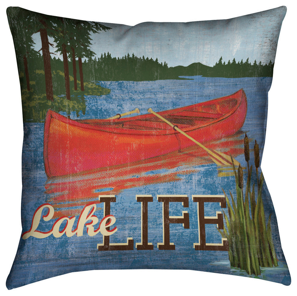 Bring the spirit of the outdoors into your home with Laural Home''s "Lake Living" decorative pillow. This scenic design features a red canoe floating peacefully on a blue lake surrounded by evergreens. All Laural Home pillows are digitally printed to create crisp, vibrant colors and images. Made to order in the USA.