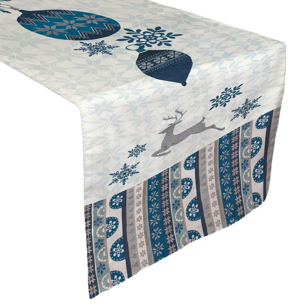 Fill your dining area with seasonal spirit courtesy of Laural Home''s "Simply Winter" table runner! This fun, patterned design features dancing reindeer and classic snowflake icons in cool winter blue hues. The festive tones of this design will make a unique, elegant addition to your dining decor this holiday season. All of our products are digitally printed and generously sized to create crisp, vibrant colors and images. 100% Polyester Machine Washable Water Repellent Recommended for Indoor Use Only Artist: Veronique Charron