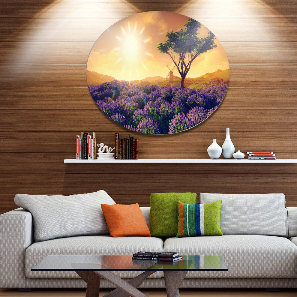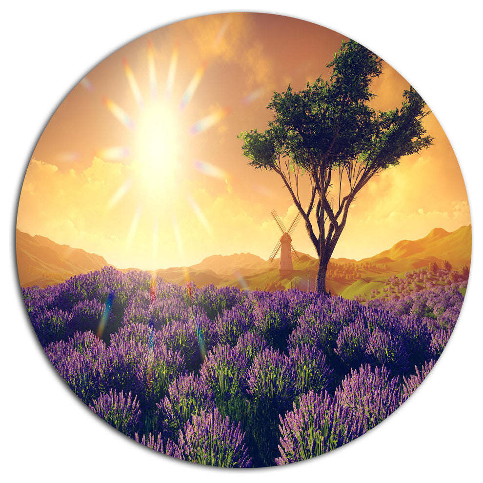 Lavender Field With Solitary Tree, Landscape Round Wall Art, 36"