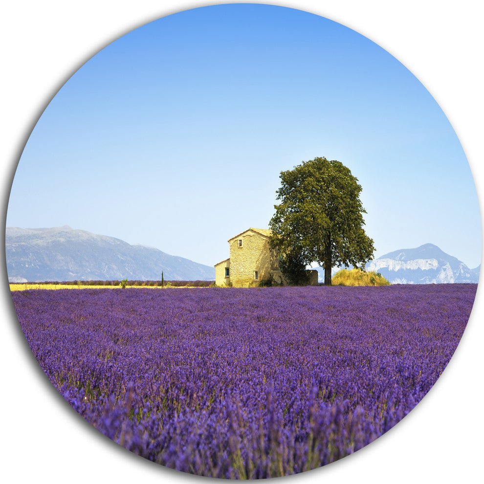 Bring Contemporary Abstraction to your home with this large Circle Metal wall art. This Lavender Flowers Blooming Field Metal Artwork makes it the focal point of any room or office.