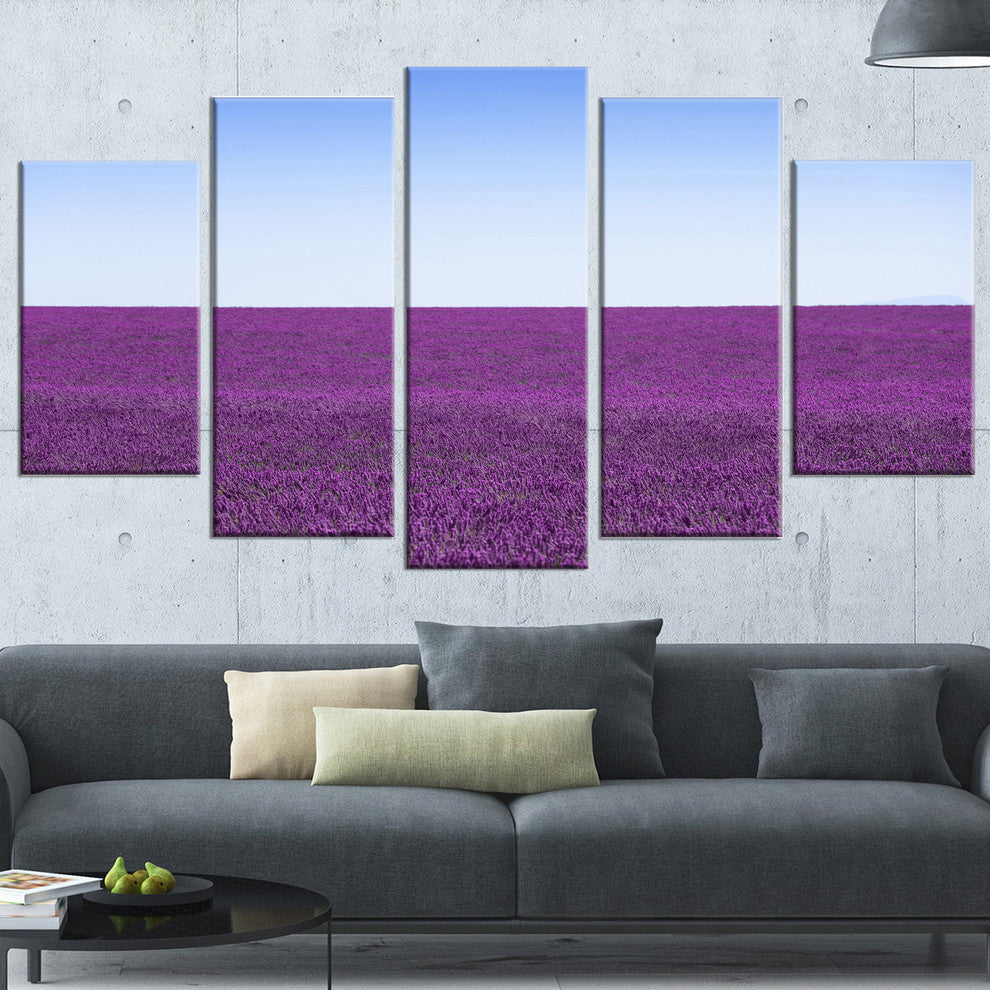 "Lavender Flowers With Blue Horizon" Landscape Wall Art Print, 5 Panels, 60"x32"