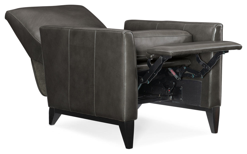 Who said recliners aren''t stylish? This is reclining, reimagined. Lean On Me offers a simple, minimal silhouette in Almost Black leather that feels sleek and fashion-forward. Its clean lines and straightforward personality conceal a push-back recliner offering cradling comfort. For those who want to put their feet up by the fireplace but have the look of a stylish chair-there''s nothing finer.
