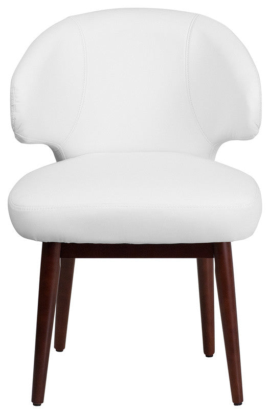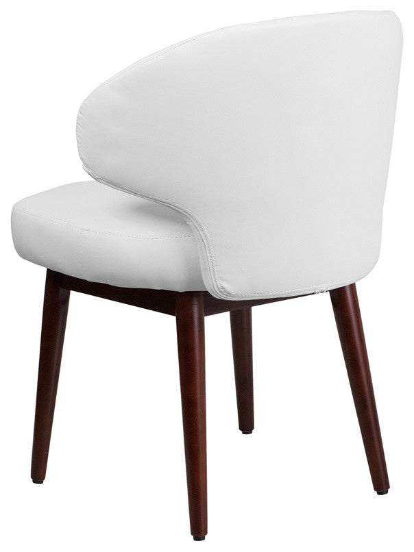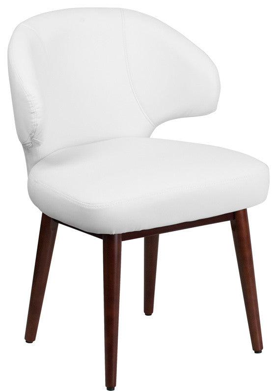 The attractive Wood Side Chair will enhance your home office space. This chair features full back support with an enveloping back. The curved back can double as armrests. The adjustable floor glides prevent your floors from being scratched. The rich walnut frame finish adds a nice color contrast.