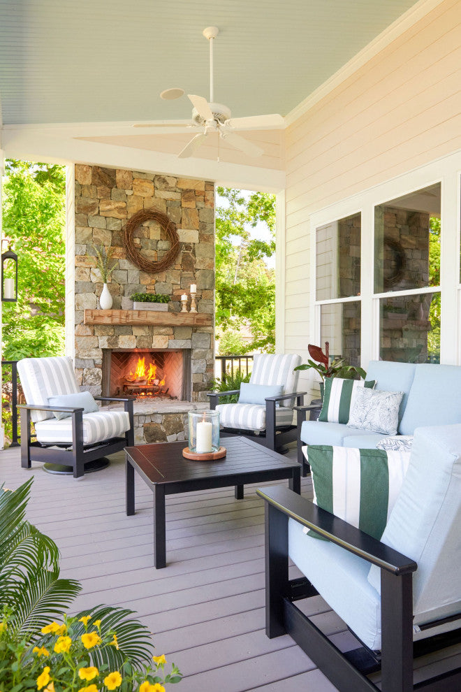 Leeward Deep Seat Outdoor Hidden Swivel Rocker, Proven Denim/Warm Gray