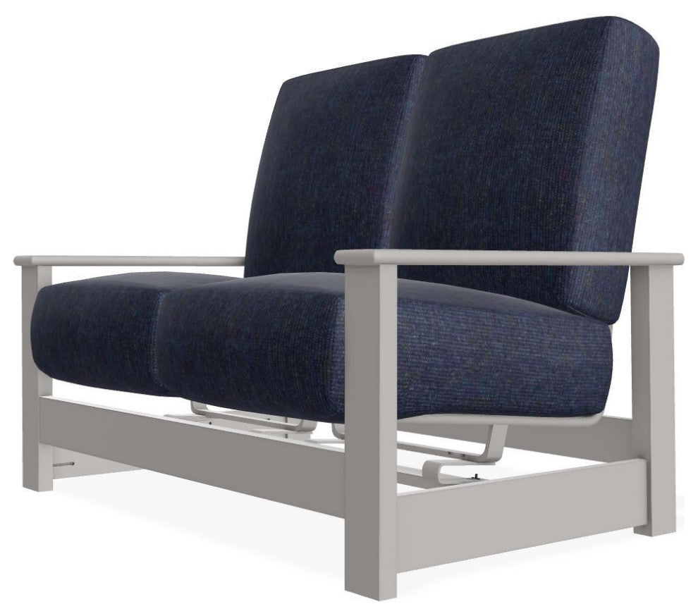 Leeward Deep Seat Outdoor Loveseat with Hidden Motion, Indigo/Warm Gray