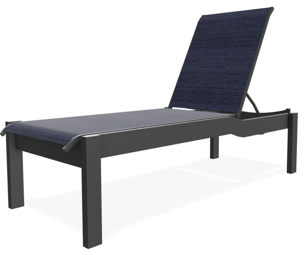 Leeward Sling Stackable Outdoor Chaise Lounge, Collect Indigo/Graphite