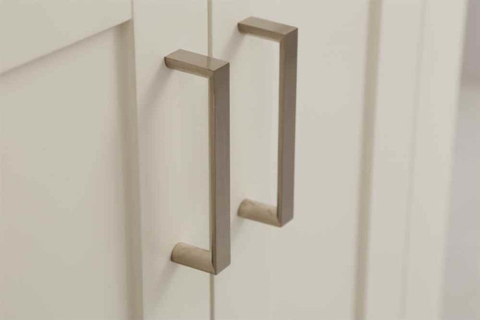 Give your bathroom a stunning upgrade! This sleek vanity features a simple design with quality craftsmanship for a transitional style. Made of solid poplar and MDF in a white finish, its two doors provide ample storage for optimum functionality. A white porcelain sink adds elegance to any modern bathroom. It comes with three pre-drilled holes for a 4" spread faucet (faucet not included).