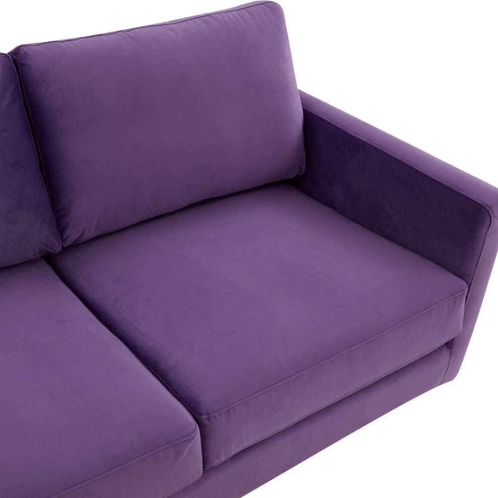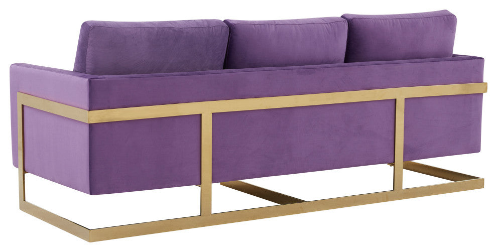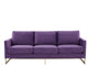 LeisureMod Lincoln Modern Velvet Sofa With Gold Frame, Purple