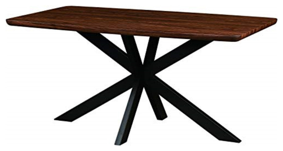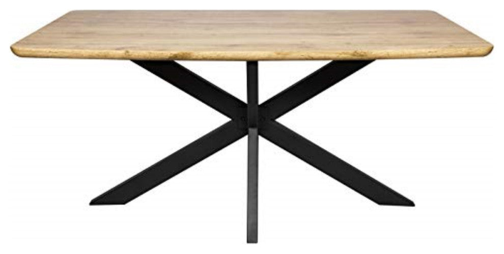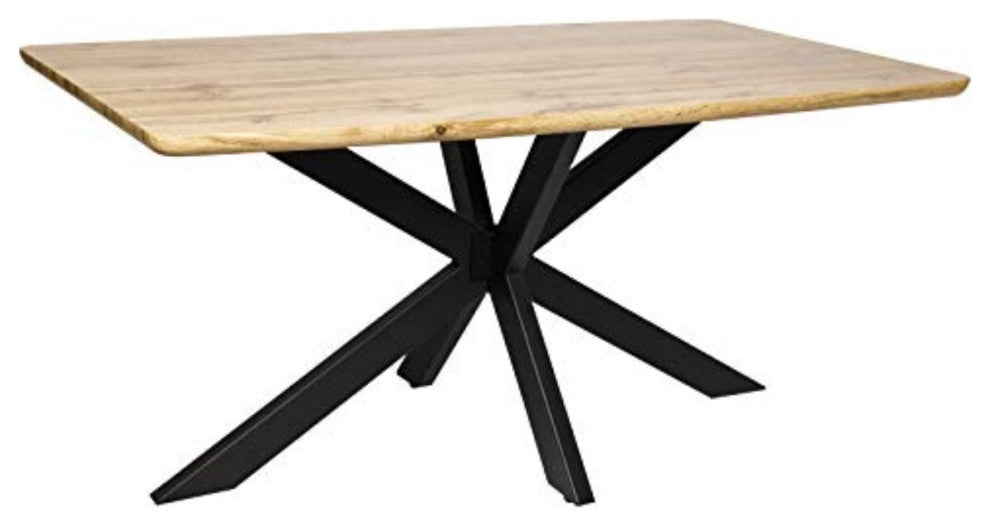 LeisureMod Ravenna 63" Rectangular Wood Dining Table With Modern Metal BaseAdd a unique silhouette with the Revanna Dining Table. The 63" rectangular wooden top sits atop a stunningly designed metal base. With its sleek appearance and geometric base, the Revanna Dining Table allows you to sit with your guests in comfort and in style.Rectangular Table Top is made of High-Quality MDF High-Quality metal powder coated base Angled x shaped legs for a modern style Top is Screwed Tightly to Base to Provide Stability Spacious Area For Comfort Comes with floor protectors to prevent scratching Some Assembly Required Product Color: Natural WoodProduct Dimension (W x D x H):63" x 35.44" x 30"