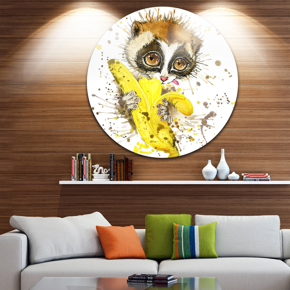 Bring Contemporary Abstraction to your home with this large Circle Metal wall art. This Lemur Eating Banana Graphics Art Metal Artwork makes it the focal point of any room or office.