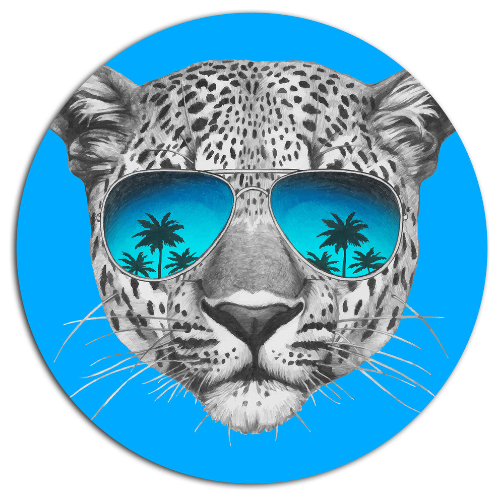 Leopard With Mirror Sunglasses, Animal Round Wall Art, 36"
