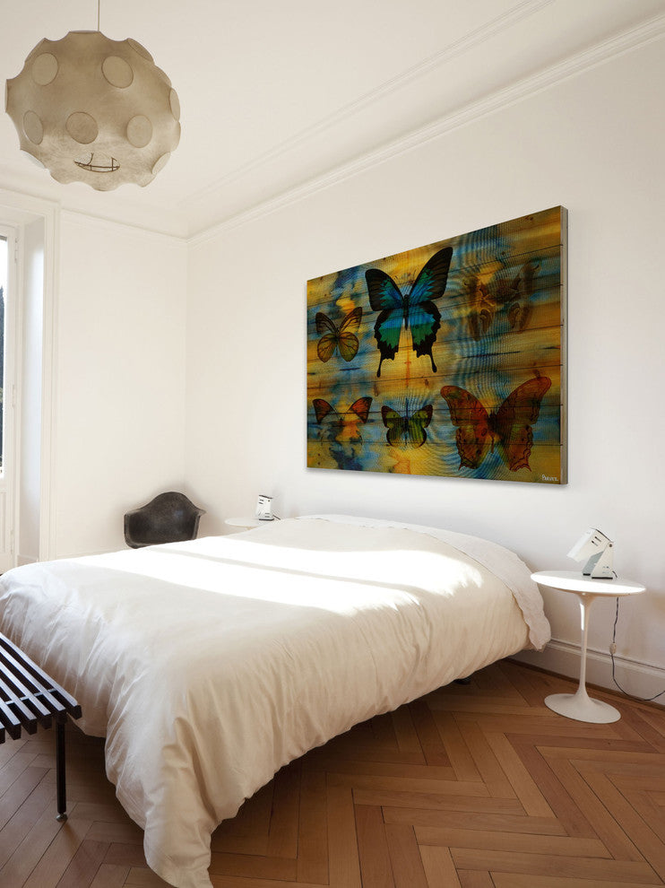 "Lepidoptera" UV Ink Print on Natural Pine Wood, 60"x40"
