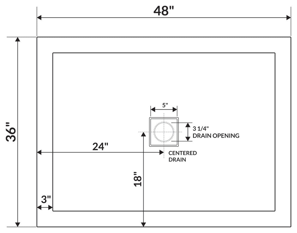 LessCare 48"x36" Single Threshold Shower Pan Base Alcove Center Drain
