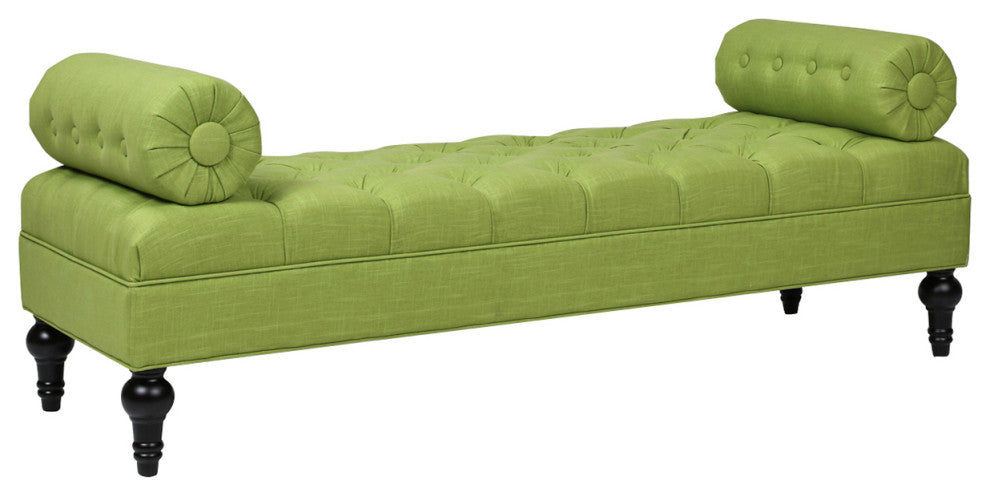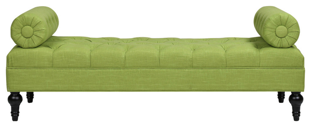 Lewis 60" Tufted Bolster Arm Entryway Bench, Bright Chartreuse Linen