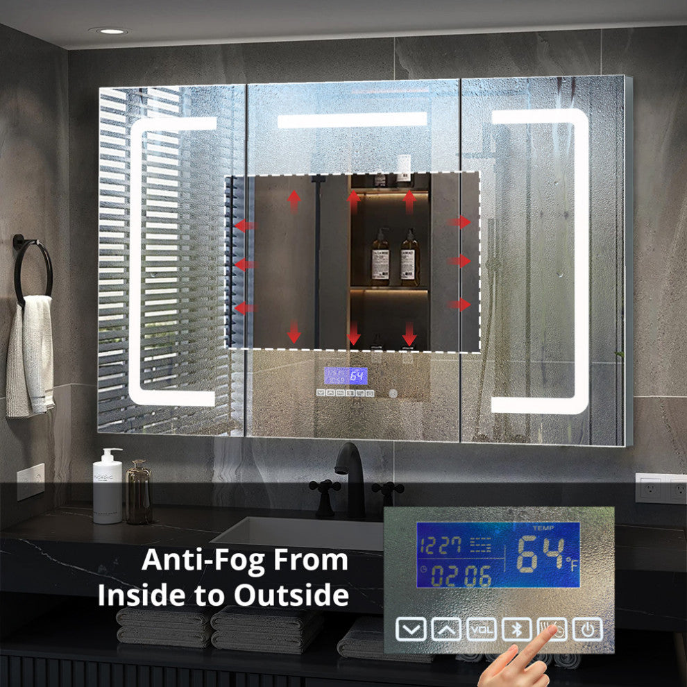 The Lesina bathroom medicine cabinet perfectly combines functionality with a unique design, providing plenty of storage room for your bathroom essentials, toiletries or accessories while adorning your space with a classy, timeless piece. The smart clock function and built-in defogger will transform your morning routine, while the Bluetooth speakers create a relaxing ambiance you''ll simply love. Everything you need within your immediate reach with the convenient shelves, low energy consumption and a superb, elegant design will make this wall mounted cabinet the perfect addition to any bathroom. This bath cabinet is available for purchase in various convenient sizes, providing a hassle-free installation and nicely complimenting any bathroom type, from contemporary, minimalist, farmhouse or boho chic. • Integrated LED light
