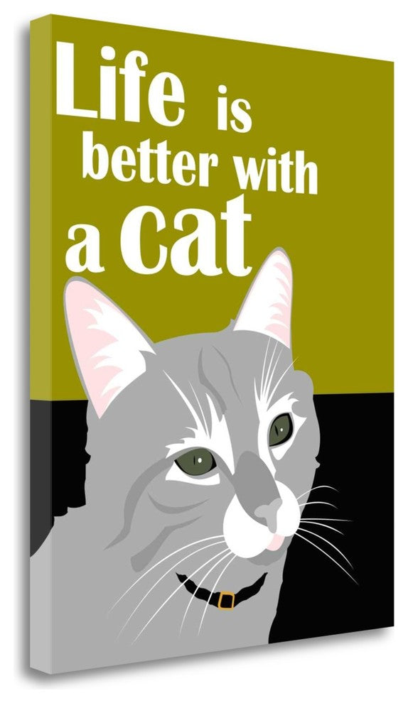 "Life Is Better With A Cat" By Ginger Oliphant, Giclee on Gallery Wrap Canvas
