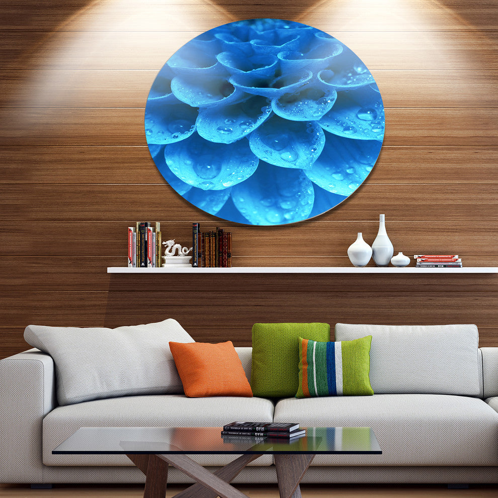 Light Blue Flower And Petals, Modern Floral Round Metal Wall Art, 36"