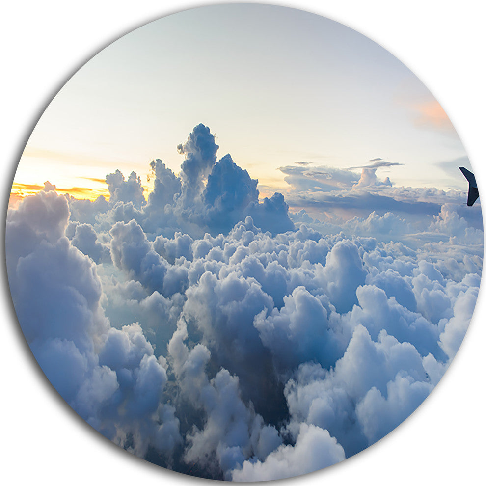 Light Blue Heavy Clouds In Sky, Landscape Disc Metal Artwork, 36"