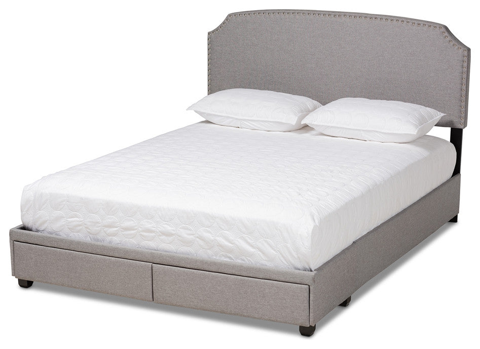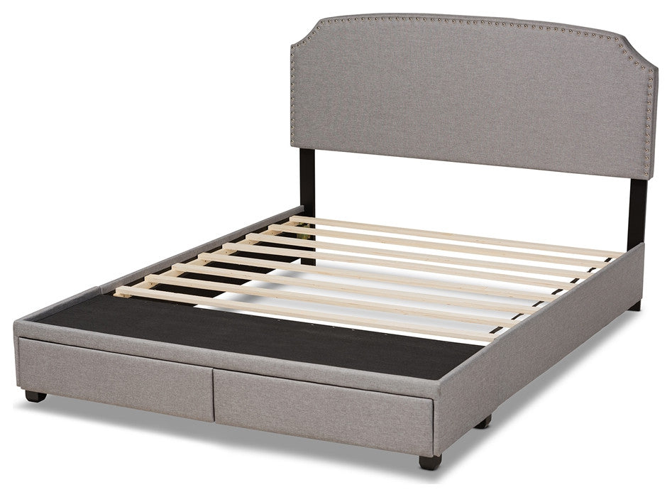 Light Grey Fabric Upholstered 2-Drawer King Size Platform Storage Bed