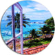 Light House Window View, Landscape Photo Round Metal Wall Art, 38"