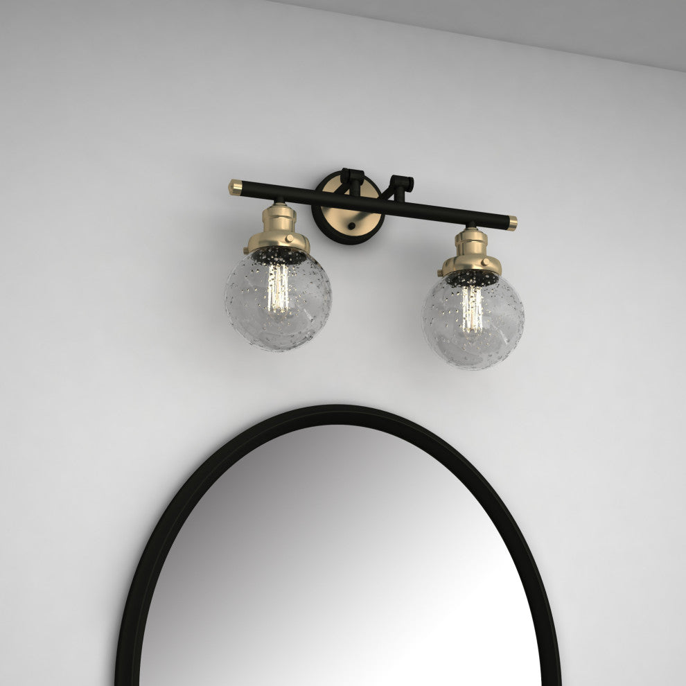 Light Vanity Light, Black With Antique Brass, 2-Light