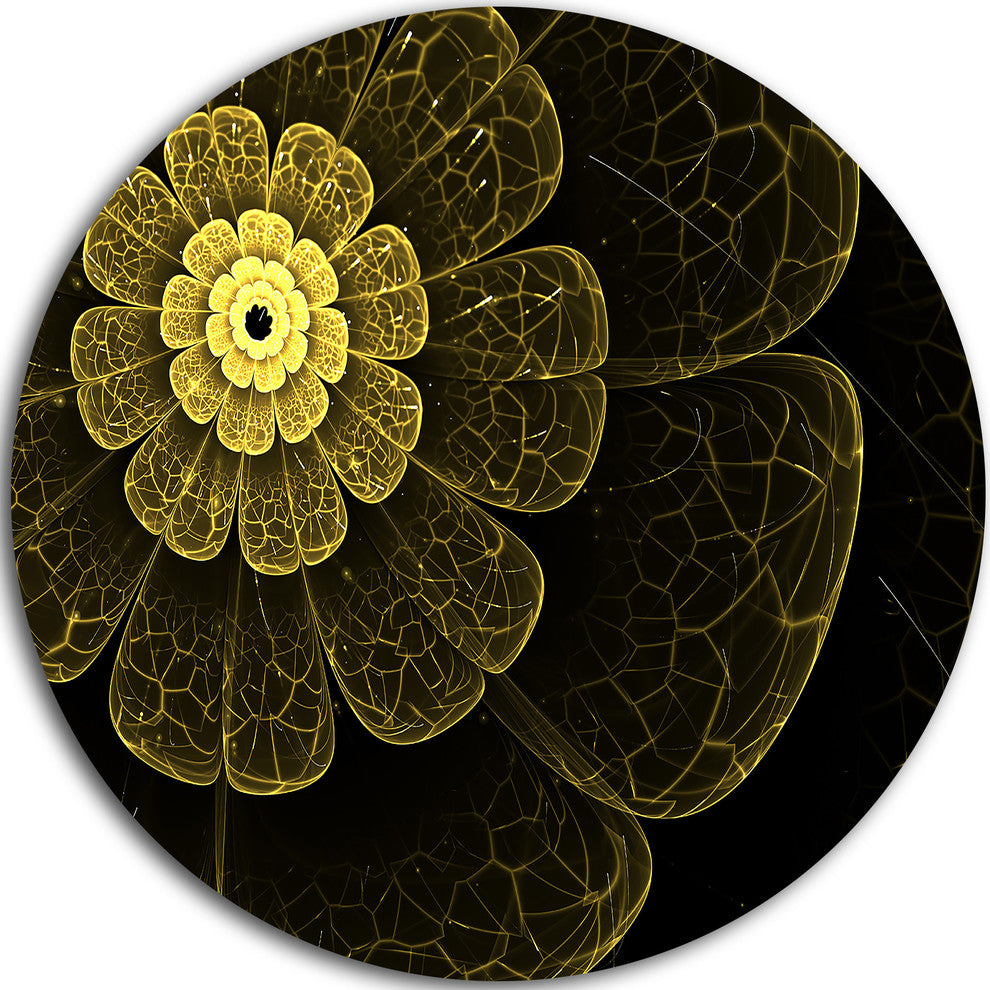 Bring Contemporary Abstraction to your home with this large Circle Metal wall art. This Light Yellow Metallic Fabric Flower Metal Artwork makes it the focal point of any room or office.