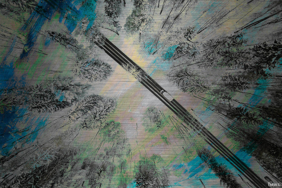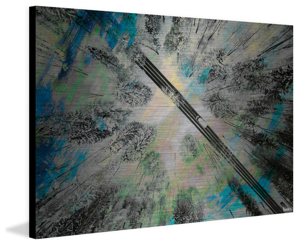 Striking and unique, the "Lighted Forest" Painting Print On Brushed Aluminum by Parvez Taj will bring your walls to life. Printed on brushed aluminum, this 45 inch wide by 30 inch tall contemporary artwork will make a statement in any living room, dining room, or bedroom.- Fine art UV ink print on brushed aluminum by Parvez Taj- the aluminum pops the colors and creates an iridescent shimmer - which gives depth to a room- Arrives ready to hang- Includes a certificate of authenticity- Artist signature on the front