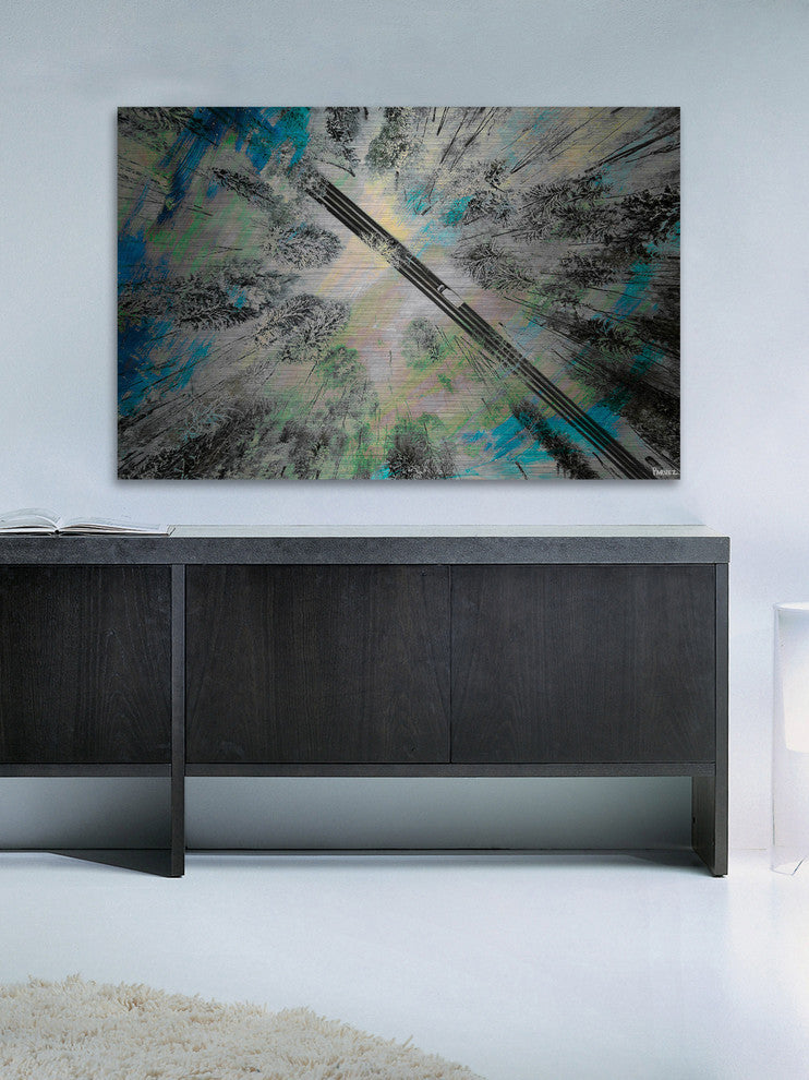 "Lighted Forest" Painting Print on Brushed Aluminum, 45"x30"