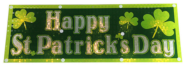 Lighted Happy St. Patrick''s Day Window DecorationItem #52406111Features: Glazed holographic finishIlluminated by 10 clear mini lightsFully assembled decoration comes in 1 piece 36" white lead cordContains 1 plug with end connector allowing you to stack multiple lighted items together (not to exceed 210 watts)Comes with 1 suction cup for hanging, spare replacement bulbs and an extra fuseUL listed for indoor/outdoor use120 volts, 60 hertz, 0.08 amps, 9.6 wattsDimensions: 15.5"W x 5.5"H x 0.75"DMaterial(s): Durable high impact plastic/Glass bulbs/Wire
